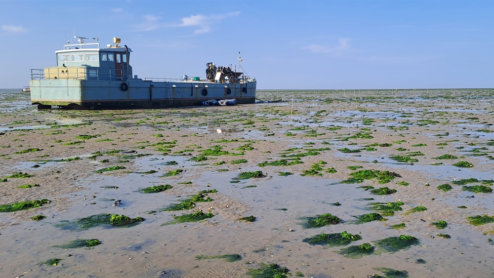 Van iets langere duur is het gezelschap van de kokkelvissers, een schip uit Yerseke en een ander met als thuishaven Tholen, stoere mannen, dag en nacht, op het ritme van de getijden aan het werk en op donderdag afvaart en dan rust aan wal maar echt gezelschap vormt een kolonie broedvogels, overwegend kleine mantelmeeuwen, aalscholvers en lepelaars. En dat allemaal op Richel - kijk, vlak voor Vlieland, wonderschoon.