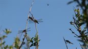 Nu lijkt de toestroom van libellen afgenomen te zijn en hangen ze rond bij de bebouwing, vooral rond de vijver en de wilgen. Naast twee platbuiken en een lantaarntje bestaan de meeste waargenomen libellen nog steeds uit viervlekken - een soort die volgens de Vlinderstichting voornamelijk voorkomt bij zure vennen in het binnenland. Langs de kust worden ze vaak aangetroffen bij duinmeertjes. Aangezien Rottumerplaat slechts twee kleine zoetwatervijvertjes heeft, lijkt het op het eerste gezicht geen geschikt leefgebied voor viervlekken. We vragen ons dan ook af waar ze vandaan zijn gekomen en wanneer ze weer zullen vertrekken.